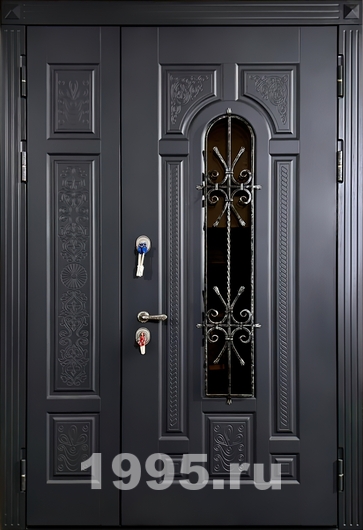 Дверь с ковкой, стеклопакетом и декоративными элементами