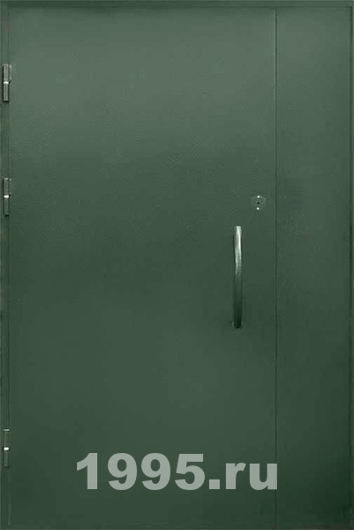 Дверь изготовлена из стали толщиной 2 мм, с двух сторон покрашена порошковым напылением зеленого цвета, устойчивым к механическим воздействиям. В комплектацию входят петли диаметром 20 мм, два врезных замка и ручка-скоба. Дополнительно конструкция оборудована доводчиком. Модель подойдет для установки в качестве тамбурной двери в многоквартирном доме.
