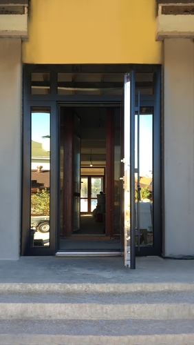 Остекленная парадная дверь с отделкой МДФ, цвет графит или любой по RAL