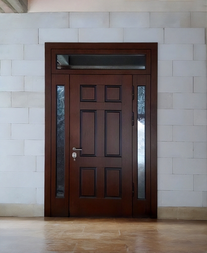 Однопольная дверь с карнизом с отделкой из массива натурального дерева