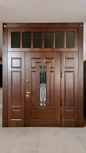 Парадная термодверь МДФ шпон с резным декором и остекленными вставками