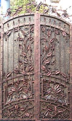 Кованые ворота давно зарекомендовали себя как прочные и надежные конструкции, которые эффективно защищают территорию от проникновения посторонних. Изысканные кованые элементы прекрасно вписываются в ландшафт и украшают входную группу в целом. Единственный недостаток кованых металлоконструкций – высокая стоимость. Практичный владелец земельного участка может изготовить такие ворота самостоятельно, сэкономив на сварке и установке элементов, ведь большинство мастеров при создании данных ограждений применяют заготовки, доступные в обычном строительном магазине.